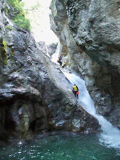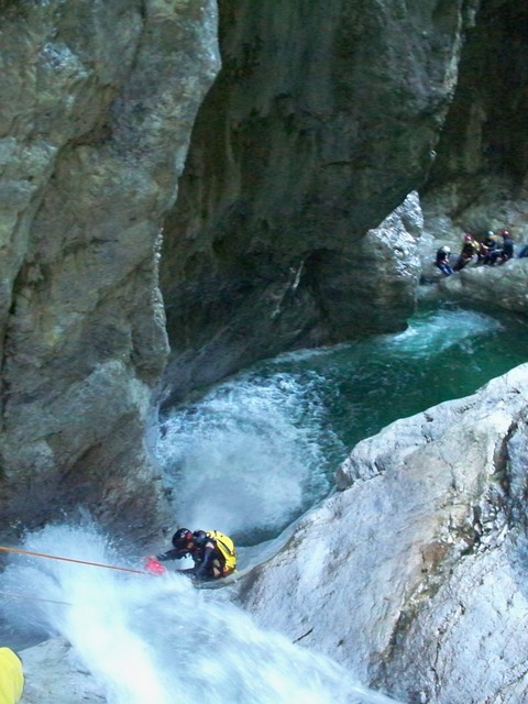 Μετά από λίγη ώρα, φτάνουμε σε έναν καταρράχτη που μπορούμε είτε να τον κατέβουμε με τσουλήθρα από την αριστερά πλευρά του, ή με άλμα μόνο για έμπειρους καθώς χρειάζεται η προσγείωση να γίνει σε συγκεκριμένο σημείο. Τον συγκεκριμένο όποιος θέλει μπορεί να τον περάσει και από το πλάι