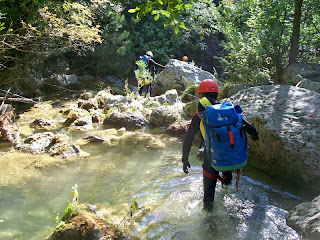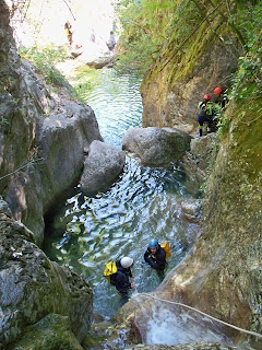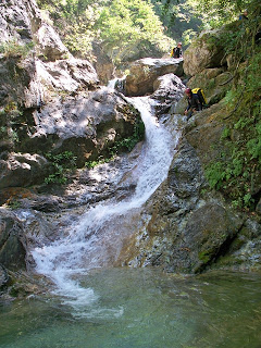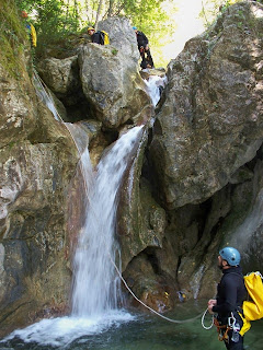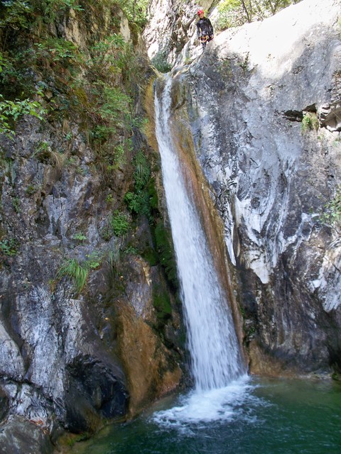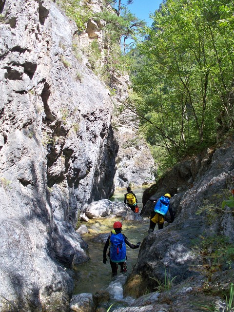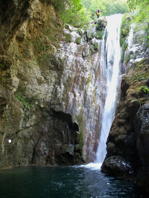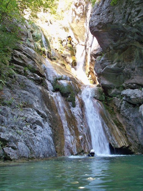 Η διάσχιση ξεκινάει αμέσως με τρεις συνεχόμενους καταρράχτες όπου ο τρίτος, ύψους 9μ. ενδείκνυται για τσουλήθρα!