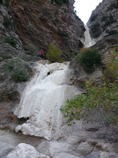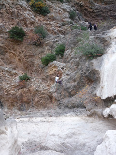 Στο σημείο αυτό υπάρχουν 2 καταρράχτες διαδοχικοί, ο μικρός 20-25μ. και ο μεγάλος γύρω στα 40μ.! Επίσης να επισημάνω ότι το φαράγγι της Λεπίδας είναι αρματωμένο από σπηλαιολογικούς συλλόγους οπότε είναι πιθανό να δείτε πάνω στο βράχο πλακέτες κ.ά. Αφού περάσαμε αρκετές ώρες και άρχισε να βραδιάζει, πήραμε το δρόμο του καταφυγίου στα 1400μ.