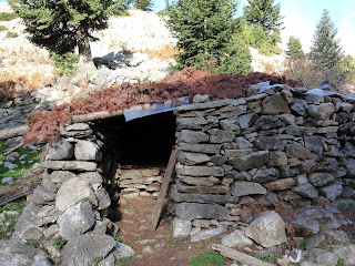 Στη διαδρομή μας προς την κορυφή και ύστερα από περίπου μία ώρα, συναντάμε στο αριστερά μας μια καλύβα κάποιου τσοπάνη, που είναι αρκετά άνετη για μας φιλοξενήσει αν οι συνθήκες το επιβάλουν