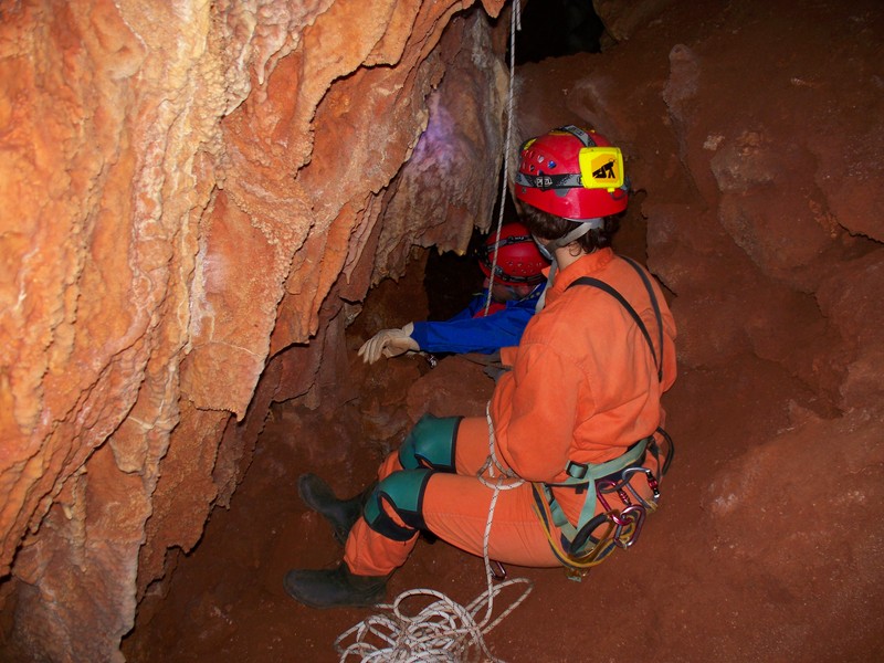Μόλις κατέβουμε, βλέπουμε ότι πρόκειται για μια μικρή αίθουσα με όμορφα σταλαγμιτικά, που στο τέλος της, μετά από ένα ανέβασμα 4-5μ περίπου, έχει μια πολύ στενή αίθουσα με άσπρους σταλακτίτες