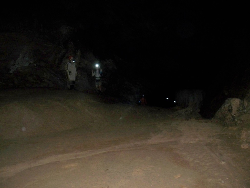 Ακολουθεί ένα πέρασμα μερικών μέτρων μέσα από νερό, και ένα ανέβασμα 3μ περίπου χωρίς σκηνή, για να βρεθούμε στη μεγάλη αίθουσα με τα γκουανό. Εδώ θα δούμε και πολλές νυχτερίδες να πετάνε πάνω από το κεφάλι μας.
