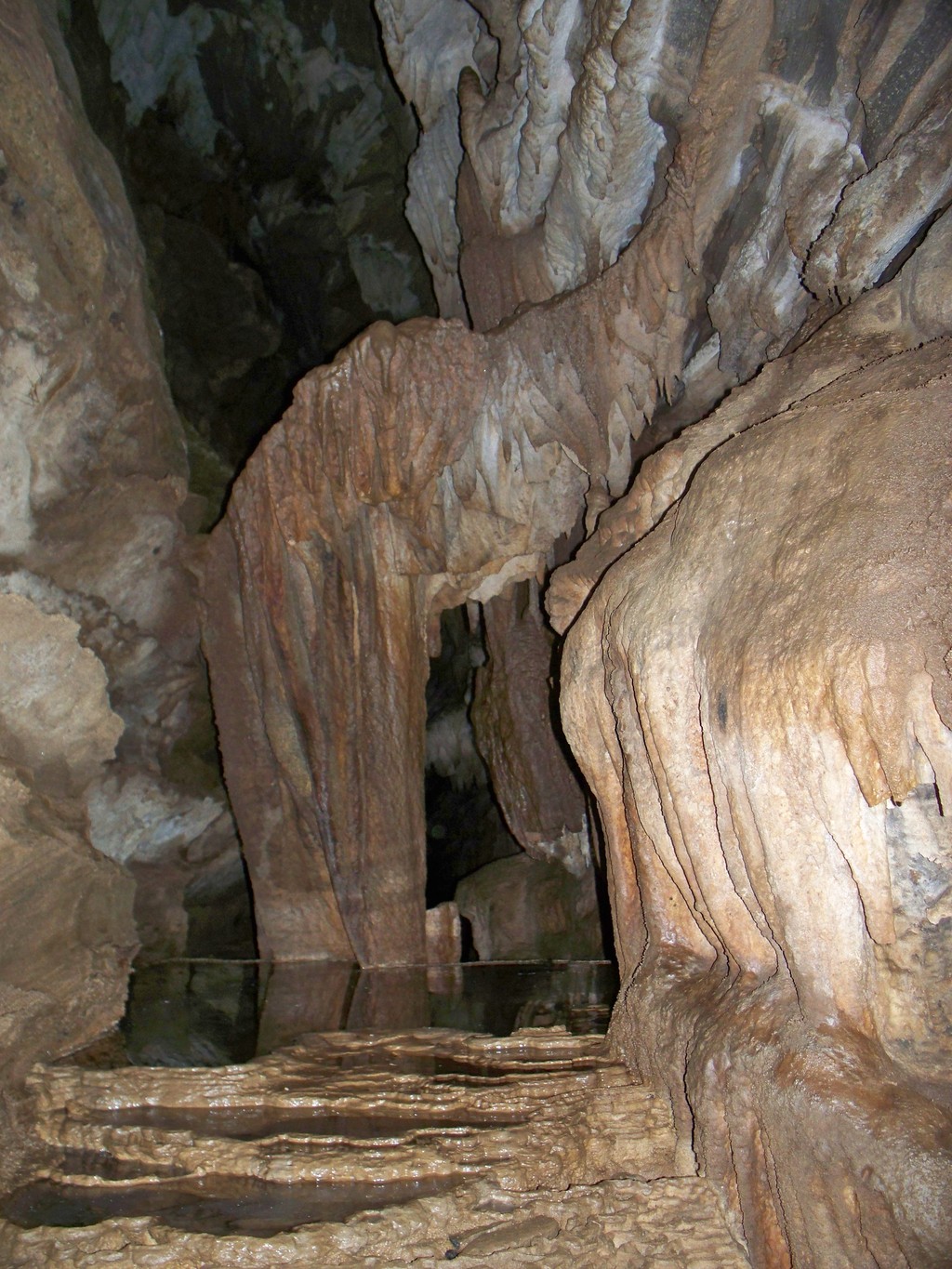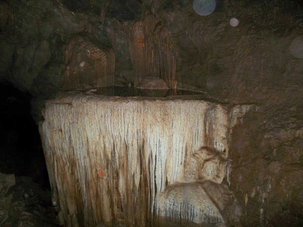 Συνεχίζοντας το ρήγμα συναντάμε ένα όμορφο σταλαγμιτικό με μια λιμνούλα, η οποία όμως στη δεύτερη επίσκεψη δεν είχε καθόλου νερό.