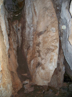 Μετά από περίπου 20μ ο κατηφορικός διάδρομος σταματάει. Εκεί ξεκινάει ένας τοίχος ύψος 2μ περίπου και υπάρχει μια μικρή αίθουσα που τελειώνει εκεί.