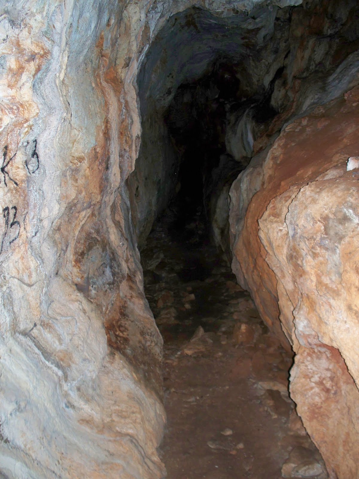 Η είσοδος του (περίπου 1×1μ) μας οδηγεί μετά από 3-4μ. σε ένα κατέβασμα 2μ. που χρειάζεται μόνο αντιστήριξη.