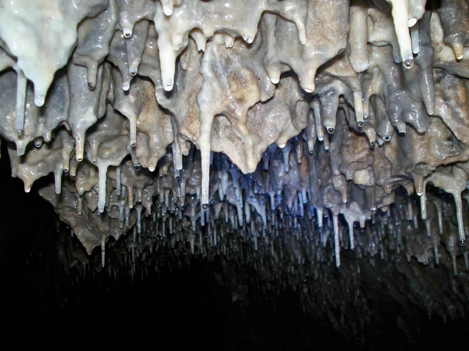 Καθώς προχωράμε, βλέπουμε μικρούς σταλακτίτες στην οροφή