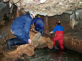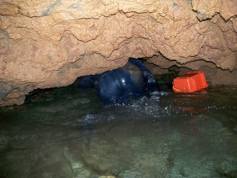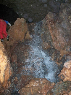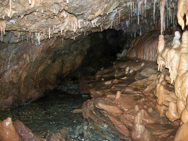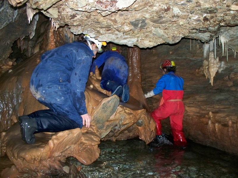 Έχοντας βραχεί μέχρι το γόνατο προς το παρόν, και έχοντας περπατήσει περίπου 300μ από την είσοδο, φτάνουμε σε ένα σημείο όπου το σπήλαιο έχει δύο διαδρόμους. Ακολουθήσαμε τον αριστερό και μετά από λίγο βρεθήκαμε σε μια αίθουσα με πάρα πολύ ωραίο διάκοσμο