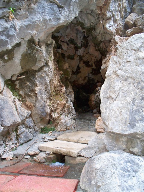 Έχει δύο εισόδους, σε λίγα μέτρα απόσταση η μία από την άλλη, και προτιμήσαμε τη δεύτερη γιατί μας επιτρέπει να μπούμε χωρίς να βραχούμε.