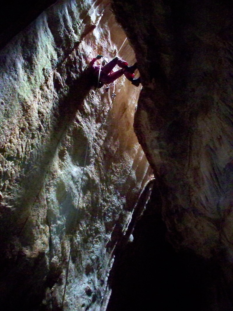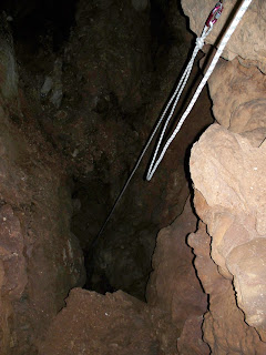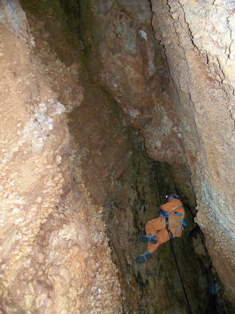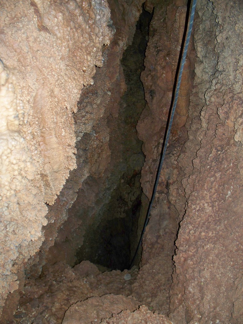 Ακολουθεί ένα πέρασμα στα δεξιά, και βρισκόμαστε μπροστά σε ένα βάραθρο βάθους 17μ περίπου, το οποίο έχει ένα πολύ στενό σημείο το οποίο μας δυσκόλεψε ειδικά στο ανέβασμα.