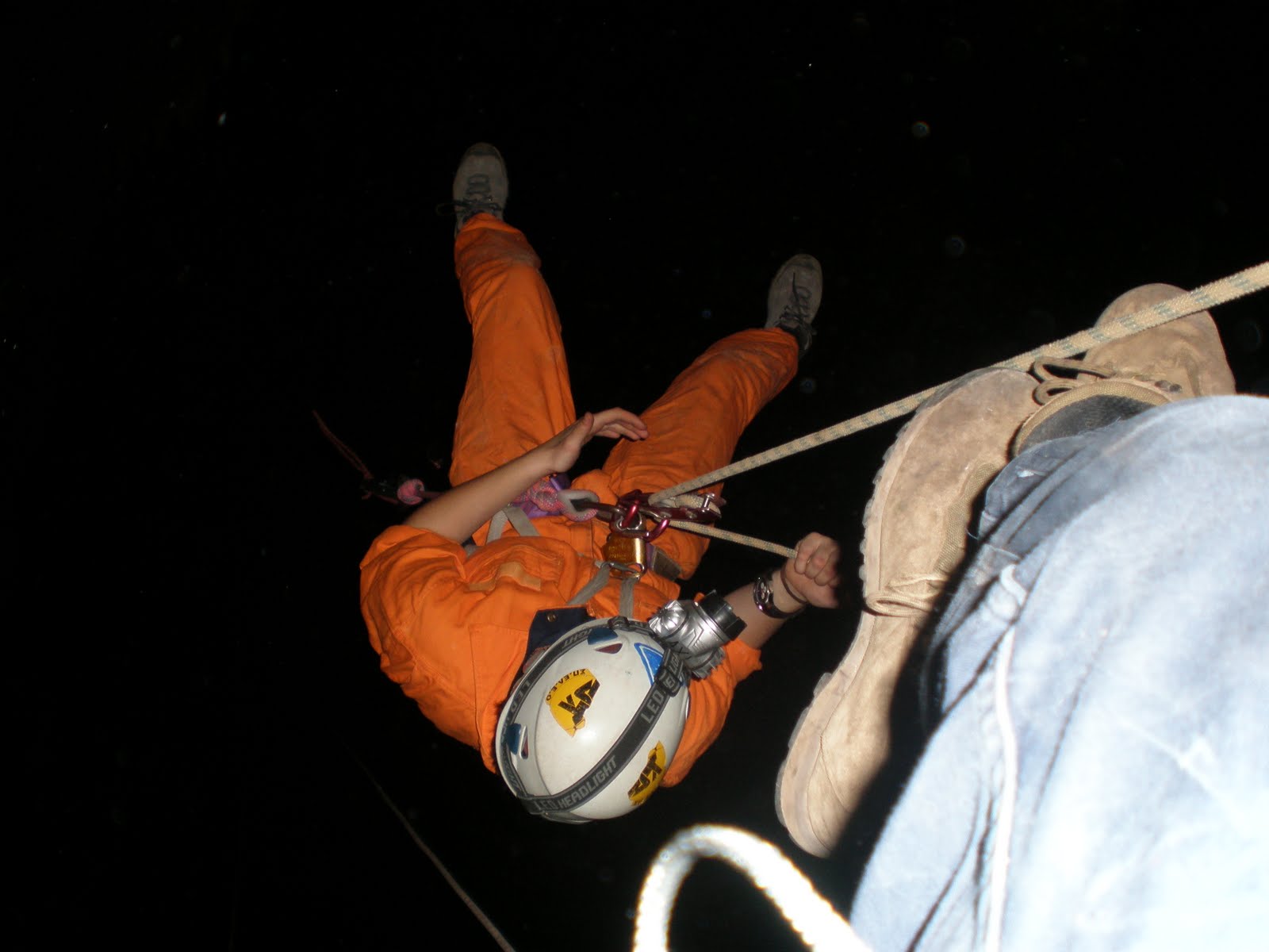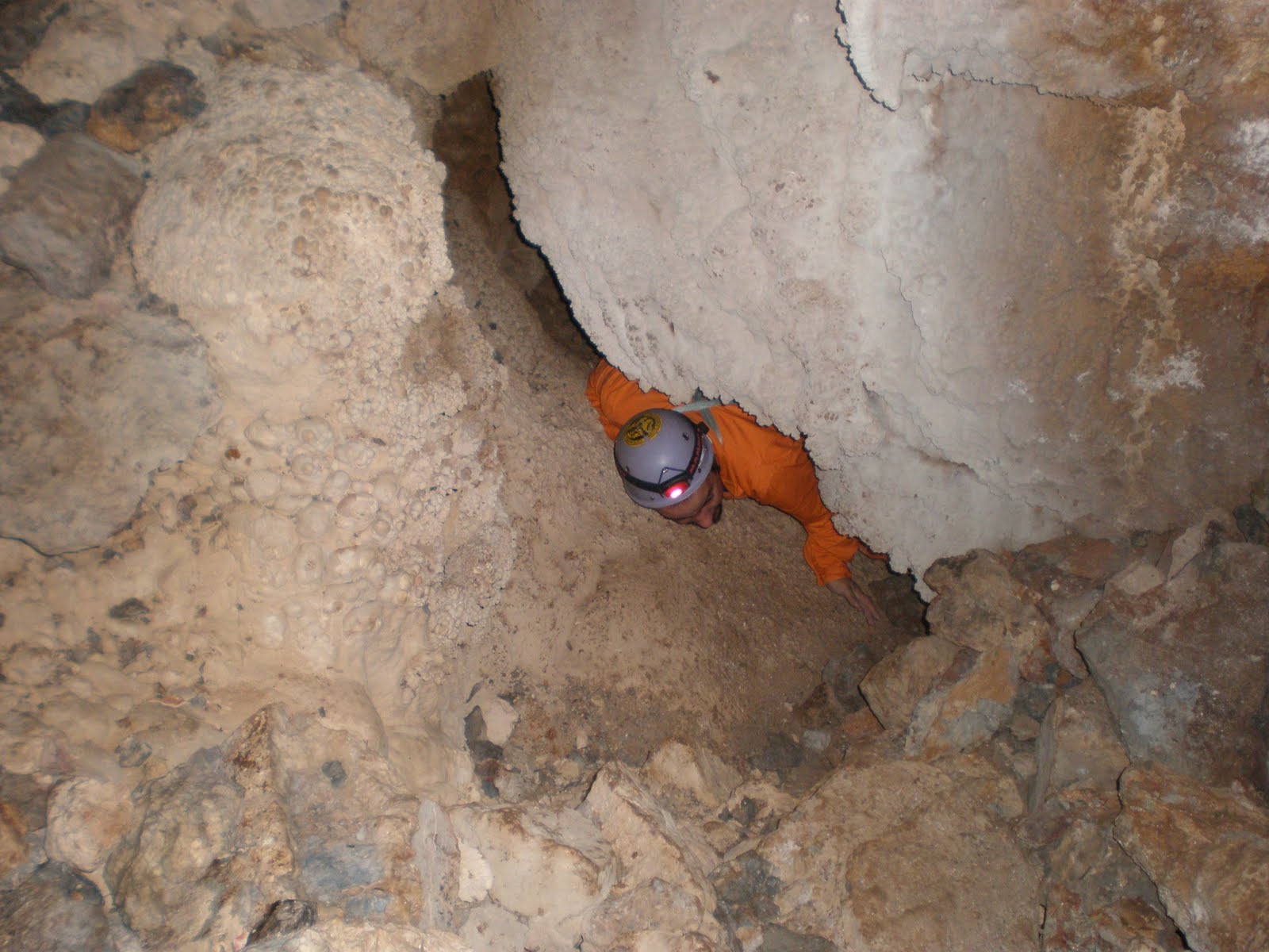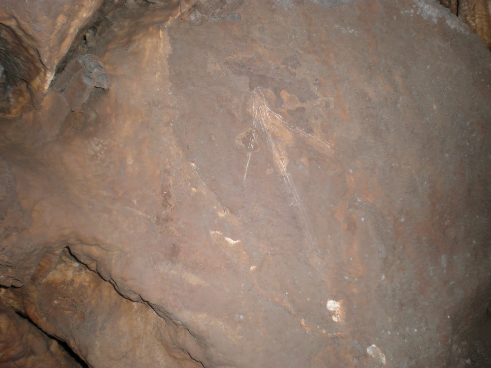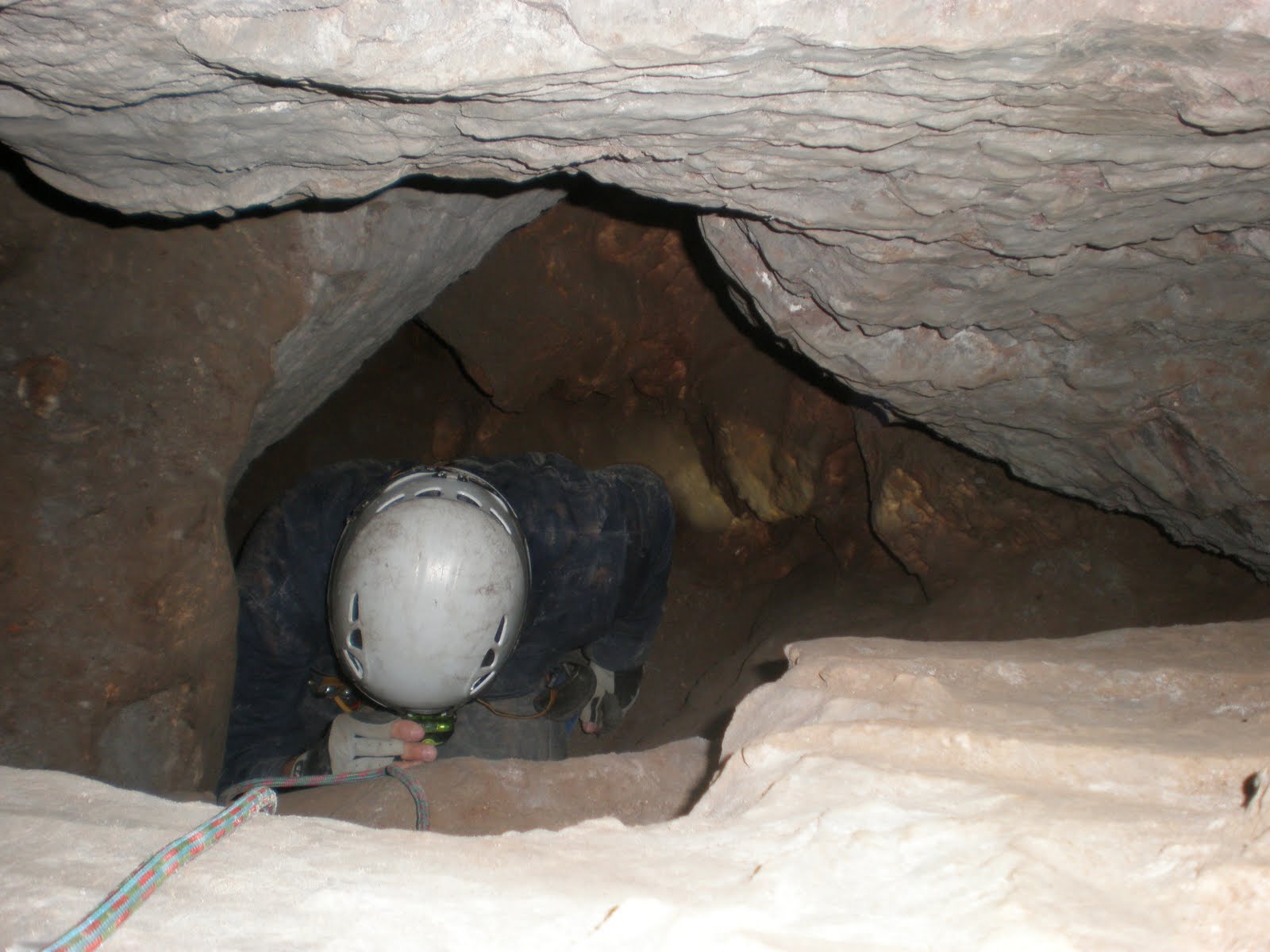 Σε μία από αυτές, που έχει βάθος περίπου 2.50μ και είναι αρκετά στενή, και μπορούμε να κατέβουμε με αντιστήριξη, βλέπουμε ένα βελάκι πάνω στο βράχο που δείχνει την προφανή (τουλάχιστον για τα δεδομένα τώρα) έξοδο.